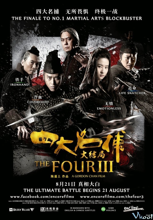 Giới thiệu phim Tứ Đại Danh Bổ 3 - The Four 3 (2014): Tứ Đại Danh Bổ 3 là phần phim cuối cùng của series phim chuyển thể từ bộ tiểu thuyết cùng tên của Ôn Thụy An. Trong phần phim này, Gia Cát Tiên Sinh bị hãm hại & Tứ đại danh bổ phải cùng nhau hợp sức cứu người. Cũng từ đó, phát hiện ra nhiều chân tướng, sự thật bí ẩn của những vụ án năm xưa. Hành trình truy tìm này dẫn đến một cuộc chiến khốc liệt chưa từng có.